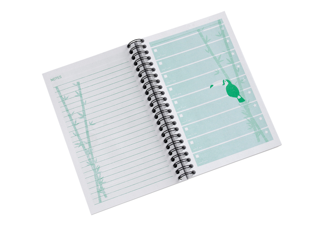 * Een hip én handig boekje voor het effectief afronden van al jouw to-do's. * Een vrolijke noot voor op jouw bureau gemaakt van 100% gerecycled papier! * Aan de ene zijde is er voldoende ruimte om notities te maken, aan de andere zijde gebruik je het lijstje om je actiepunten op te schrijven. * Zo kun je precies bijhouden welke taken er nog op jouw actielijstje staan! * Linkerpagina: gelinieerd papier voor het maken van notities. * Rechterpagina: To Do-formulier. * Gemaakt van 70 g/m² papier dat 100% gerecycled is! * FSC®-gecertificeerd. * Formaat: 195x125mm * Eenvoudig te gebruiken dankzij de Wire-O. * Geschikt voor internationaal gebruik. * Kleur: groen. * Verpakt per 2 stuks.