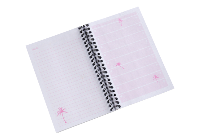* Een hip én handig boekje voor het effectief afronden van al jouw to-do's. * Een vrolijke noot voor op jouw bureau gemaakt van 100% gerecycled papier! * Aan de ene zijde is er voldoende ruimte om notities te maken, aan de andere zijde gebruik je het lijstje om je actiepunten op te schrijven. * Zo kun je precies bijhouden welke taken er nog op jouw actielijstje staan! * Linkerpagina: gelinieerd papier voor het maken van notities. * Rechterpagina: To Do-formulier. * Gemaakt van 70 g/m² papier dat 100% gerecycled is! * FSC®-gecertificeerd. * Formaat: 195x125mm * Eenvoudig te gebruiken dankzij de Wire-O. * Geschikt voor internationaal gebruik. * Kleur: roze. * Verpakt per 2 stuks.