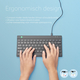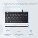 * Dit compacte toetsenbord beschikt over alle ergonomische kenmerken om gezond te kunnen typen. Het compacte design zorgt ervoor dat je handen bij gelijktijdig gebruik van toetsenbord en muis altijd binnen schouderbreedte blijven. De lichte toetsaanslag vermindert de spierspanning tijdens het typen. Het toetsenbord is ultra dun, zodat je handen en polsen tijdens het typen in een ontspannen, natuurlijke stand staan. Dit zorgt voor een betere doorbloeding van je handen. * Het R-Go Compact Break toetsenbord geeft met LED- kleursignalen aan wanneer het tijd is om te pauzeren. Tijdens het typen verandert het lampje van kleur, zoals bij een stoplicht. Als het lampje groen oplicht, betekent het dat je gezond werkt. Oranje geeft aan dat het tijd is voor een korte pauze en rood dat je te lang hebt doorgewerkt. Met het inlassen van korte pauzes tijdens je werkdag zal je concentratie verhogen, voorkom je overbelastingklachten en blijf je fit tijdens je werkdag. * Specificaties; * Met pauze indicator. * Geen numeriek keypad. * Bedraad. * Compabiliteit; Windows, Mac OS, Linux. * Plug & play. * Type verbinding USB C ( inclusief omvormer naar USB A). * Kabellengte 1500mm. * Afmeting 9x285x139mm (HxLxB).