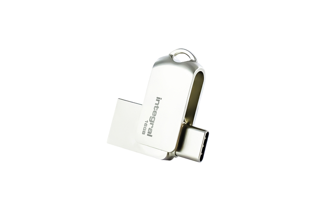 * De Integral 360-C Dual USB-C Flash Drive biedt compatibiliteit tussen smartphones, tablets, pc's en Macs. * De Fusion Dual USB-C Flash Drive biedt een handige dubbele interface; USB Type-A connector voor alle huidige USB 3.1, USB 3.0 en 2.0 poorten en de nieuwe toekomstbestendige USB Type-C connector, voor een breed scala aan moderne Android apparaten en de nieuwste Macbooks. * Gegevens en mediabestanden overzetten tussen pc's, Mac's, smartphones en tablet-pc's. * Dubbele aansluitingen - USB Type C en full-size USB 3.1 (Type A). * Type C-interface ontworpen voor Android-smartphones en -tablets en Apple MacBooks. * Compatibel met PC en Mac.