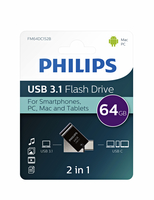 Usb Stick 3.1 Philips 2in1 Usb-a 64gb Zwart