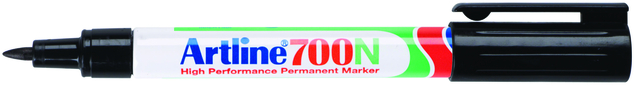 * De Artline 700 marker zwart is een voorzien van een ronde punt met een schrijfbreedte van 0,7mm. * Deze marker kan worden gebruikt op poreuze en niet poreuze ondergronden zoals hout, kunststof, metaal of karton. * Het betreft hervulbare markers met een permanente inkt. * Deze inkt droogt onmiddelijk, lekt niet en geeft geen vlekken. * Verder bevat de inkt geen xyleen of een ander giftig oplosmiddel en is deze volgens NEAT formula (New Ecological Advanced Technology) ontwikkelt. * Hij schrijft als een gewone pen dankzij de fijne punt, zeer geschikt voor het zetten van strakke lijnen of het schrijven van tekst.* Navulbaar.