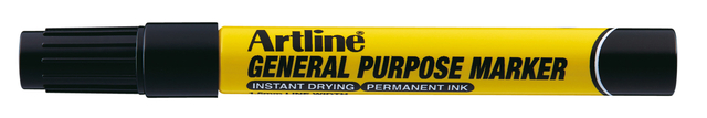 * De Artline General purpose is de ideale marker voor het markeren van de diverse oppervlakten zoals metaal, glas, plastiek, tegels. * Deze permanente inkt heeft als eigenschap dat deze direct droog is. * Tevens bevats deze inkt geen xyleen of ander giftig oplosmiddel. * De marker is voor zien van een conische punt 1,5mm in de kleur zwart. * Het artikel wordt geleverd op een blister.