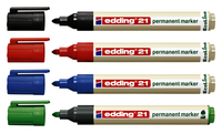 * Marker met reukarme inkt zonder toevoeging van xyleen/tolueen. * Permanente en watervaste marker voor schrijven en markeren op bijna alle materialen. * Ronde punt met een schrijfdikte van 1,5-3mm. * Minstens 96% van de gebruikte kunststof is van gerecycled materiaal en 83% daarvan is gemaakt van post consumer materiaal. * Navulbaar met edding navulinkt MTK25. * Certificaat Green Brand 2021/2022. 1 doos x 4 stuk