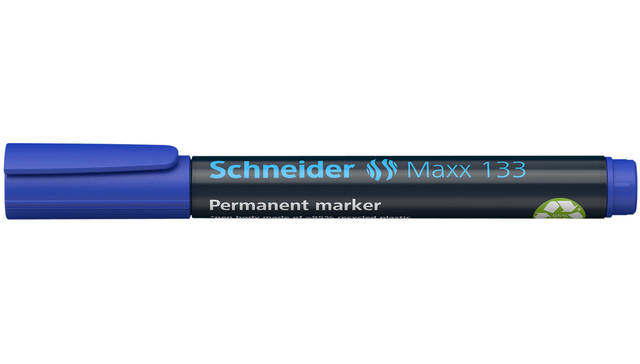 * Permanentmarker met beitelpunt, schrijfbreedte ca. 1 - 4 mm. * De speciaal ontwikkelde koppunt staat buiten de schachtrand en kan zelfs bij sterke druk niet in de marker gedrukt worden. * Praktische clipdop en 'Cap-Off' inkt, dat betekent dat de marker meerdere dagen zonder dop kan liggen zonder uit te drogen. * Vrijwel reukloos, sneldrogend, lichtecht, veeg- en watervast. * De behuizing bestaat voor 95% uit gerecycled plastic. * Schrijfkleur blauw.