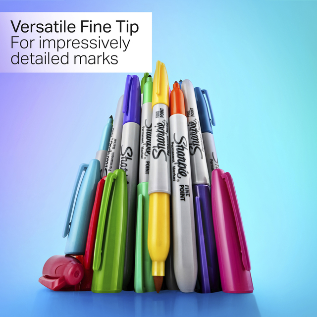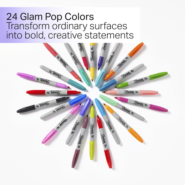 * Met felle tinten van elke kleur zullen de Sharpie Glam Pop Permanent Markers u inspireren om gewone oppervlakken te transformeren tot zelfverzekerde, creatieve uitlaatkleppen. * Deze special edition Sharpie markers zijn gemaakt om zowat overal te kunnen schrijven. * De Glam Pop-collectie bestaat uit felle kleuren die uw idee zullen doen opvallen, ongeacht het oppervlak waar u op tekent. * De originele permanent marker Sharpie heeft een iconische inkt die snel opdroogt en bestand is tegen water en vervagen. * De Sharpie-markers met fijne punt hebben een veelzijdige punt voor gedurfde en detailleerde markeringen. 1 blister à 5 stuks