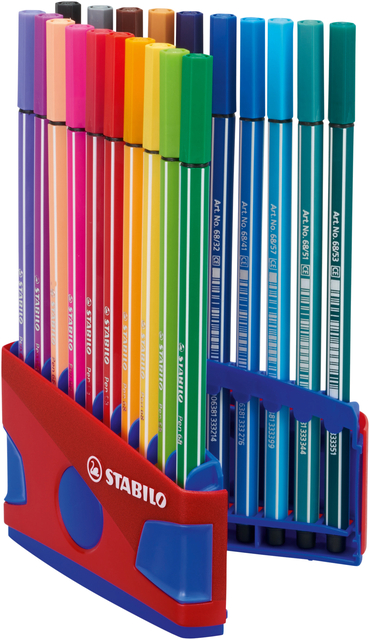 * Verkrijgbaar in 65 kleuren. Alle kleuren los verkrijgbaar.* De premium viltstift STABILO Pen 68 in een etui à 20 kleuren 1 etui à 20 stuks