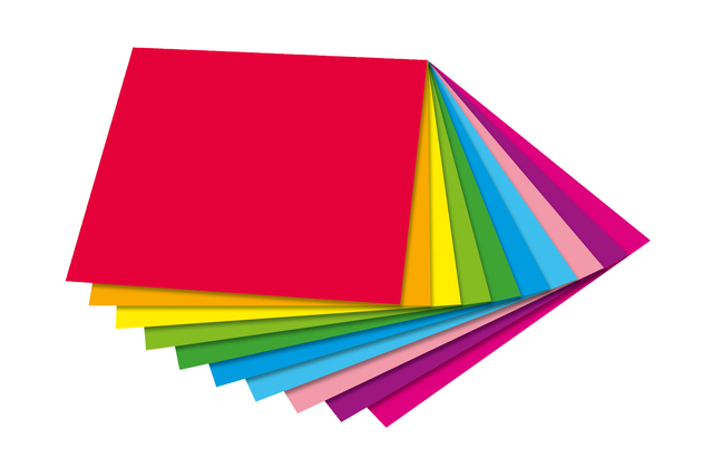 * Pakje met 50 dubbelzijdig gekleurde vouwblaadjes 80gr in 10 verschillende kleuren. * Formaat 15x15cm.