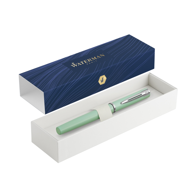 * De Waterman Allure vulpen heeft een hedendaags stijlvol ontwerp dat perfect is voor studenten en professionals. * De duurzame gegraveerde punt en soepel vloeiende inkt zorgen voor een consistente en persoonlijke schrijfervaring. * De Waterman pen heeft een gedurfde, maar elegant pastelkleurige groene afwerking met Franse invloeden en is daarmee een goede eerste stap in de wereld van het fijnschrift. * De Allure is gebaseerd op een klassiek Waterman ontwerp, heeft een gladde metalen behuizing en een reeks moderne afwerkingen die zorgen voor een eersteklas uitstraling die zeker indruk zal maken, of het nu in een klaslokaal of de directiekamer is