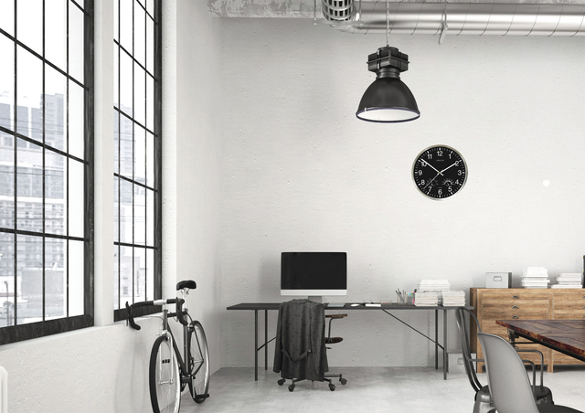 * Met zijn moderne ontwerp past de WETTY-klok zich aan alle decors aan, van de meest klassieke tot de meest moderne. * Uitgerust met een thermometer en een hygrometer die de binnentemperatuur en de luchtvochtigheid meet van uw werkruimte. * Leesbaarheid: een diameter van 30cm voor een maximale leesbaarheid tot 35m dankzij het contrast van de grote zwarte cijfers. * De klok is een perfecte aanvulling op de UNILUX LED-lampen en kantooraccessoires (kapstokken, voetensteunen, ergonomische producten). * Robuust: dankzij het RVS frame is deze mooi afgewerkte klok bestand tegen elke test. * Snelle wandmontage met 1 ophangoog. * Inclusief 1 AA 1,5v batterij. * Diameter: 30 cm. * Dikte: 4,5 cm. * Gewicht: 0,58 kg. * 2 jaar garantie. * Materiaal: RVS frame met glazen bescherming. * De klok is niet geluidloos.