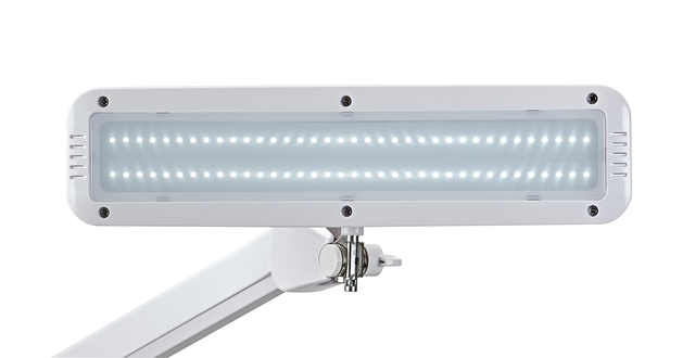 * Krachtige, compacte LED-lamp.* Comfortabel in gebruik en traploos dimbaar.* Ruimtebesparend met goede actieradius.* Krachtig model met aantrekkelijke prijs voor semi-professioneel gebruik.* Uitstekend geschikt voor alle precisiewerk, bijvoorbeeld in werkplaatsen, door hobbyisten,in het laboratorium of in de cosmetica-industrie.* Zeer zuinig door de moderne LED-techniek.* Technisch beveiligingsconcept Made by MAUL. * Robuuste metalen arm.* Driedimensionaal verstelbare armatuurkop.* Met de bediening aan de armatuurkop kan de lamp gemakkelijk aan- en uitgeschakeld worden. * Lichtsterkte lamp: 2920 lux op 35 cm afstand.* Kleurtemperatur per lichtbron: 6500 Kelvin (daglicht wit).* Aantal lichtbronnen: 1.* Energie-efficiëntieklasse per lichtbron: E (spectrum A tot G).* Gewogen energieverbruik per lichtbron: 11 kWh/1000 h.* Levensduur per lichtbron (L70B50): 20000 h.* Nuttige lichtstroom per lichtbron: 1449 Lumen.* Materiaal: Arm: metaal.* Afmetingen: Kop: 8,5x33,5 cm.* Mobiliteit: Kop: kantelbaar, draaibaar.* Schakelaarpositie: Kop. * Milieuvriendelijke en veilige verpakking, recyclebaar.* Technisch veiligheidsconcept Made by MAUL: alleen lampen en verlichtingsarmaturen die intensieve tests hebben ondergaan en zijn goedgekeurd, worden opgenomen in ons programma. Een team met kennis van optica, elektronica, mechanica en ook productietechniek staat garant voor de veiligheid van de werkpleklamp LED MAULintro, dimbaar. * 820 58: Tafelklem metaal, voorzien van kunststof beschermlaag (klembreedte tot 6,3 cm), arm 80° draaibaar.