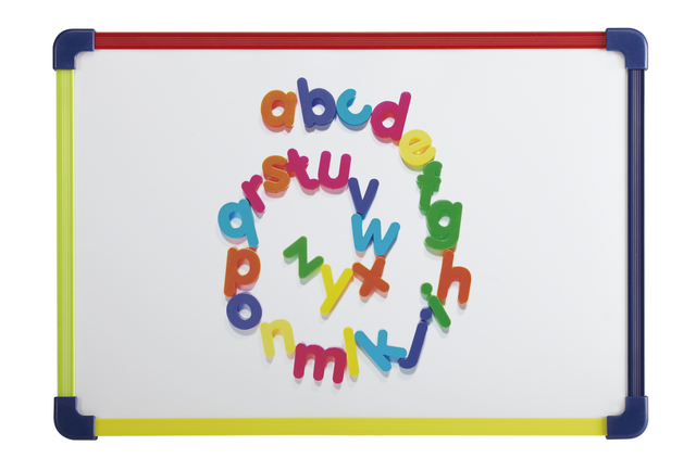 * Whiteboard om te tekenen, spelen, schrijven en leren. * Met ophangkoord. * Geschikt voor kinderen vanaf 3 jaar. * Magneethoudend, met whiteboardmarker beschrijf- en zeer goed droog afwisbaar. * Zowel horizontaal als verticaal te gebruiken. * Aan beide zijden te gebruiken. * Licht en ook voor kinderen goed te dragen. * Stevig frame van gekleurd kunststof. * Oppervlakte van met kunststof overtrokken plaatstaal. * Zonder aflegbakje.