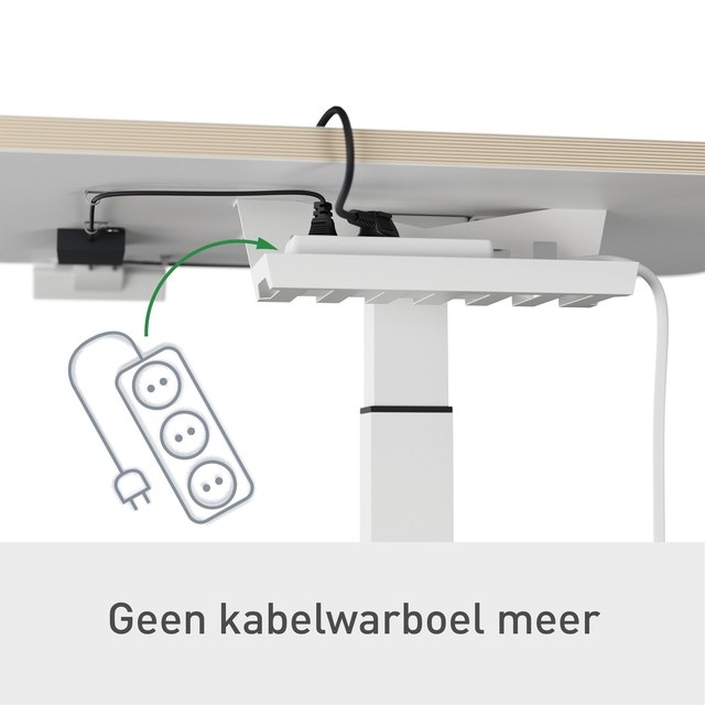 * Inclusief een kabelgoot die onder het bureau kan worden bevestigd voor een stopcontact en 4 zelfklevende doorzichtige clips om kabelwarboel te verminderen. 1 stuk